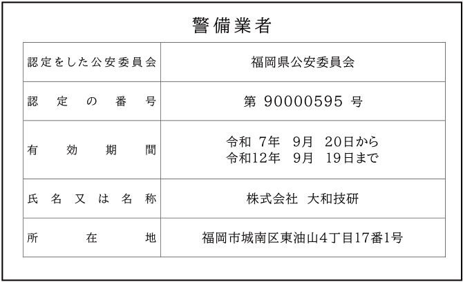 ㈱大和技研 警備事業部は、警備賠償責任保険・労災保険に加入しており、また、警備員全員が団体傷害保険に加入しておりますので、万が一の事故の備えも万全です。